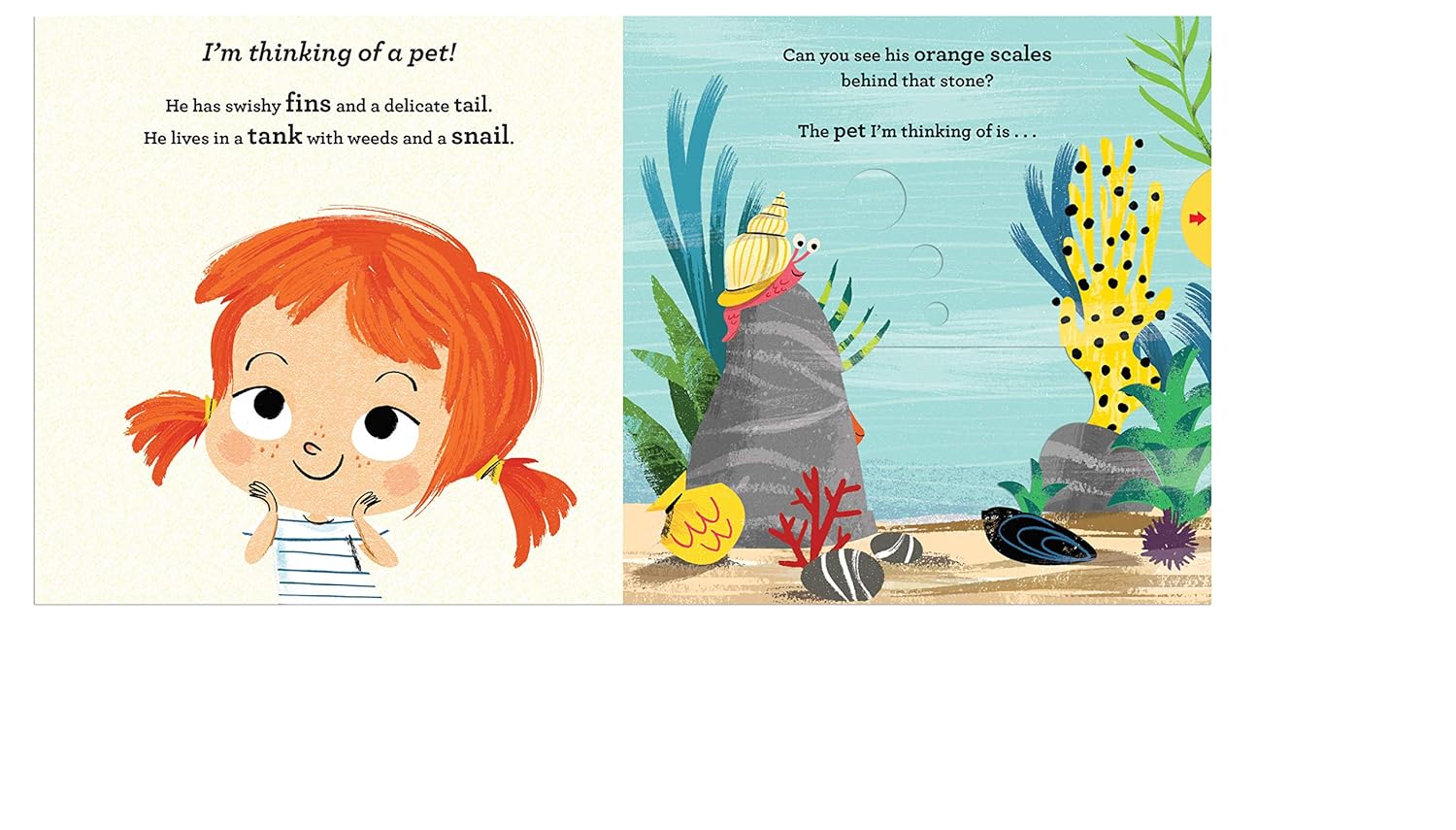 Each child is thinking of a pet . . . What do they look like? What do they eat? And what noise do they make? Follow the simple clues, make a guess, then spot the animal hiding in the beautifully illustrated scene and pull the slider to reveal the answer! With four favourite pet animals to find - and animal noises too!